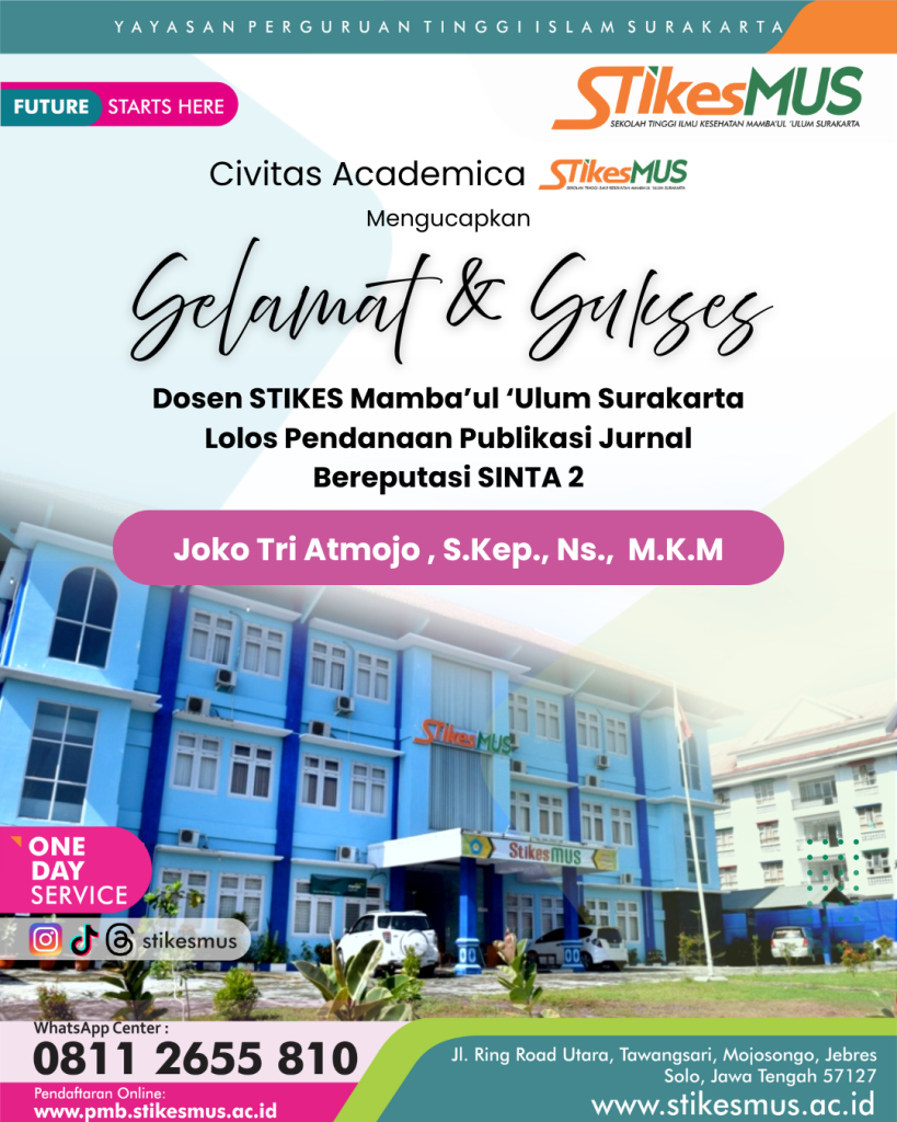 STIKES Mamba’ul ‘Ulum Surakarta menyampaikan apresiasi dan ucapan selamat atas capaian yang diraih, serta berharap keberhasilan ini dapat memberikan dampak positif bagi peningkatan reputasi institusi dan pengembangan ilmu pengetahuan di bidang kesehatan.