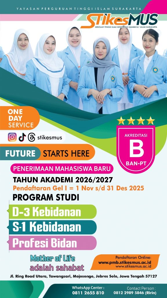 Sebagai perguruan tinggi kesehatan di bawah naungan Yayasan Perguruan Tinggi Islam Surakarta dengan akreditasi B (BAN-PT), STIKESMUS berkomitmen menyelenggarakan pendidikan kebidanan yang berkualitas dan relevan dengan kebutuhan masyarakat. Di STIKESMUS, bidan dipandang sebagai Mother of Life, sahabat bagi ibu, bayi, dan keluarga.